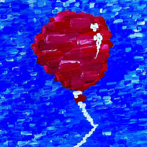 Description: This 'Scarlet Waltz Balloon' NFT combines a digital and physical experience. This digital collectible is paired with a corresponding acrylic and canvas painting (11"x14"), adding a tangible and traditional artistic element to the unique piece. This art piece features a red digital balloon dancing in the sky, creating a mesmerizing digital illusion through carefully crafted brush strokes.