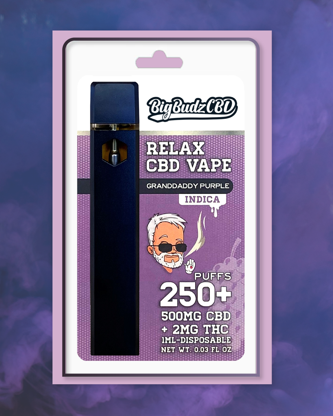 The Granddaddy Purple strain is an indica strain derived from the crossing of Mendo Purps, Skunk and Afghanistan known for its potent relaxation effects and distinctive berry and grape flavors, making this vape pen a delicious and effective option for stress relief and overall wellness. The full spectrum CBD oil in this pen provides a comprehensive range of cannabinoids and terpenes, for a more complete and holistic experience.
